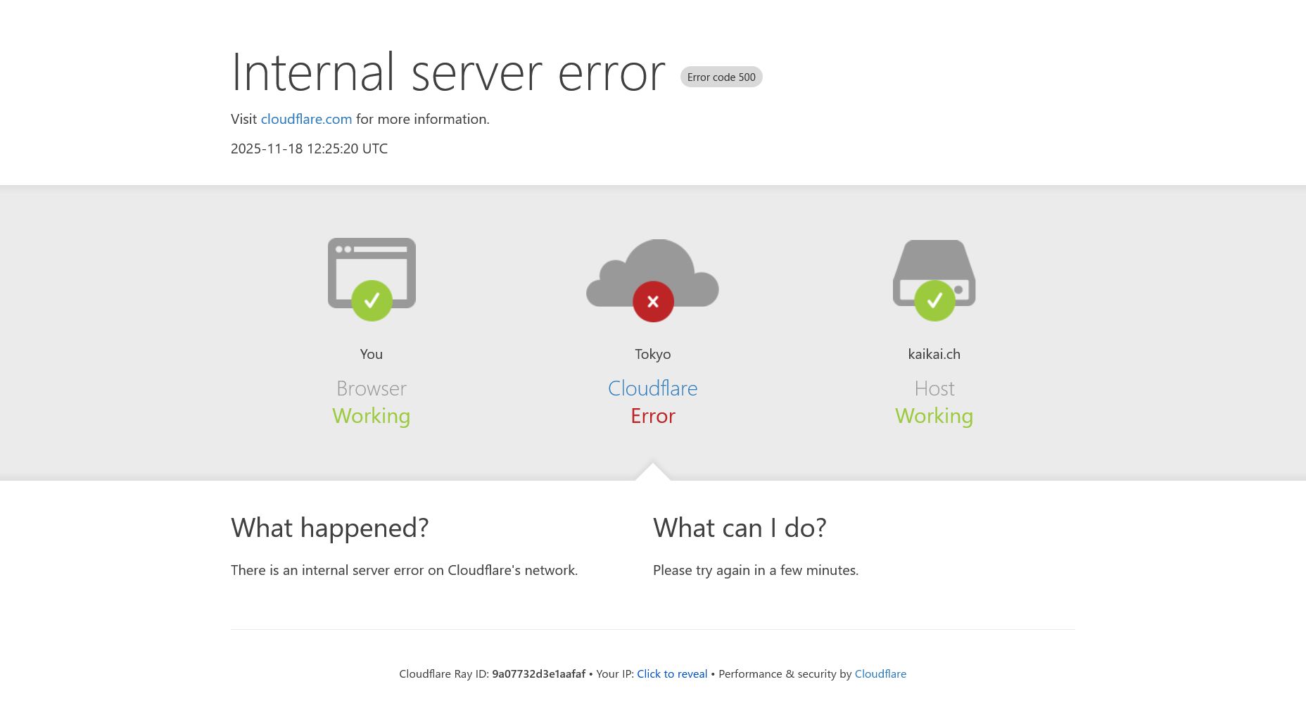 2025年11月18日、大手CDNプロバイダーのCloudflare(クラウドフレア)で大規模な通信障害が発生した。協定世界時(UTC)の11時20分頃から、同社のネットワークを経由するWebサイトやAPIへの接続が困難になり、多くのユーザーに対してHTTPエラーページが表示される事態となった。影響はWebサイトの表示だけでなく、同社のダッシュボードへのログインやセキュリティ機能など広範囲のサービスに及んだ。Xでは「インターネットが壊れた」という投稿も見られた。