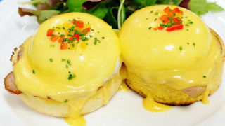 昨日は、外食で、海老の揚げた物(名前忘れた)とエッグベネディクトでした。