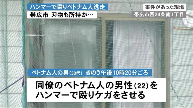 ベトナム人技能実習生の男が刃物を持ち逃走中 同僚の頭"ハンマー"で殴打