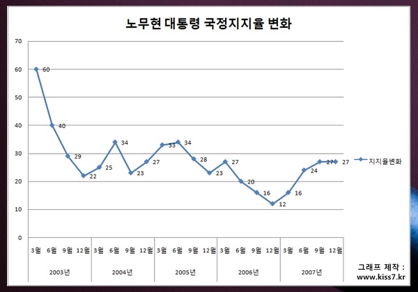 ちょっと教えてほしいんだけど廬武鉉時代の支持率の推移ってどんな感じだったのだろう。金泳三~僕クネの歴代大統領の5年間の支持率