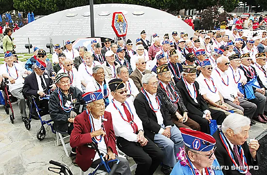 YouTubehttps://www.youtube.com/watch?v=wEXJc50RTDo2011年11月、首都ワシントンで、第二次世界大戦中に欧州の激戦地で戦った日系人部隊第100歩兵大隊、第442連隊戦闘団、軍情報機関(MIS)の元兵士らに米国最高勲章の「議会金メダル」が贈られたのを受け9日、ロサンゼルス地区に住む元兵士たちの功績をたたえる祝賀式典が、小東京の「Go for Broke」モニュメント前で行われた。
