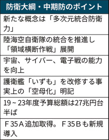 「多次元統合防衛力」 防衛大綱、与党に提示 2018/12/13 9:45 (2018/12/13 13:24更新)