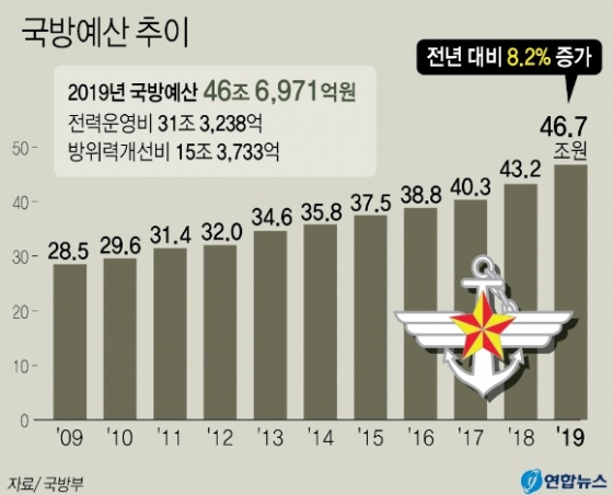 국방예산 증가율은 2008년 8.8% 이후 최고 수준이며, 국방예산 가운데 방위력개선비 증가율