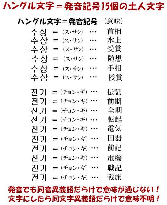 反日に凝り固まった韓国人が漢字を廃止したせいで、朝鮮語は同音異義語だらけの欠陥言語に成り下がりました。>>2