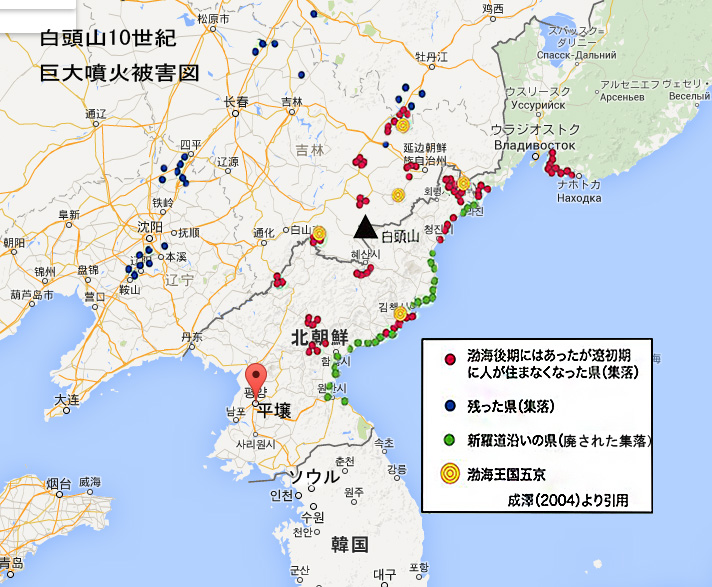 なので、長白山の噴火で後期の渤海(前期のは遼西にあった)が滅亡したのなら、