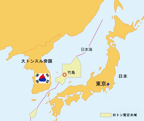 朝鮮半島とウルルン島の間にある海を東海って言えば良いのに…。
