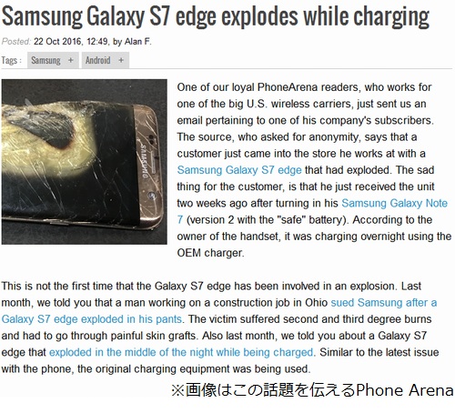 気になるのは、これまでたびたび報じられてきた「Note7」ではなく、“安全”と言われ、現在でも普通に販売されている「S7 edge」でもトラブルが続いている点だ。