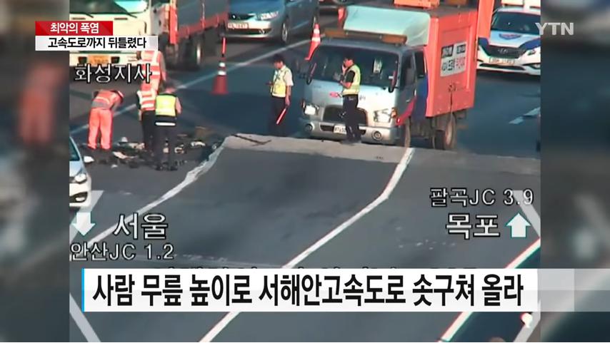 韓国--高架橋のジョイントが盛り上がる!車32台がパンクー <動画>