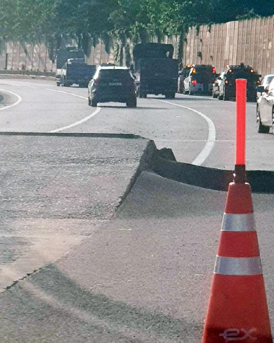 韓国釜山市で24日、高速道路の高架橋上でジョイント部分の鋭利な