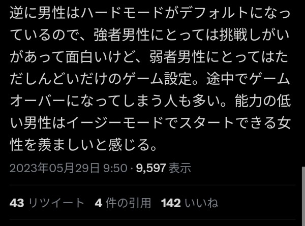 目指すべきは『男女公平(男社会と女社会の公平さ)』