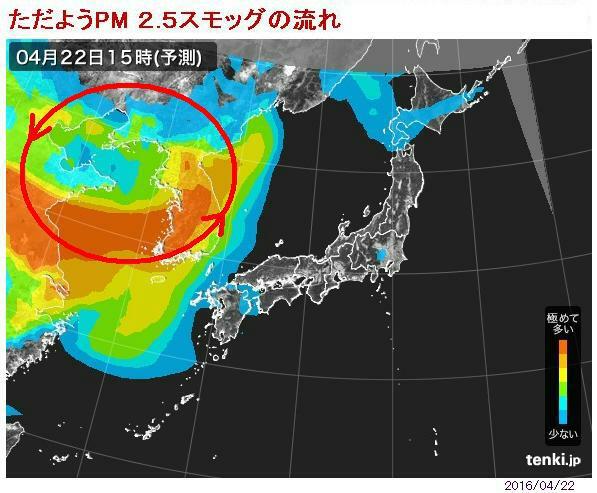 軽粒子の流れです。pm2.5のスモッグが韓国にできる理由です韓国も日本もオホーツク海高気圧で北東から風が吹きますよ