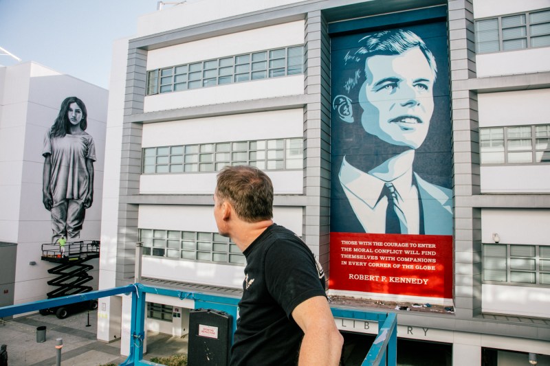 >壁画を描いたスタントン氏は17日、弁護士を通じ、壁画が消去された場合はロサンゼルス統一学区を訴える方針を示した。