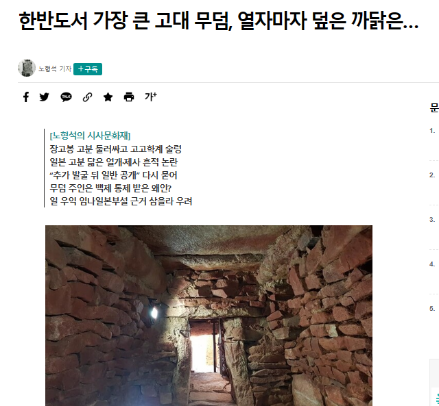 朝鮮半島で最大の古代の単一の墓が、新年の初めについに開かれた。考古学者らは5~6世紀の日本の古墳とそっくりな墓の構造に驚き、すぐに土で覆われ再び埋められてしまったことにがっかりした。今年1月、国土最南端の海南から聞こえた墓の発掘に続く覆土のニュースは、メディアには公開されなかったが、韓国国内の考古学界を騒がせた。