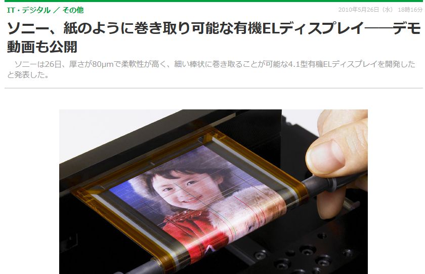 ソニー、紙のように巻き取り可能な有機ELディスプレイ――デモ動画も公開