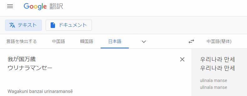 Google 「ウリナラマンセーは日本語」