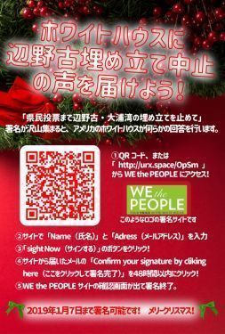 米軍普天間飛行場の移設に伴う名護市辺野古への新基地建設に関し、県民投票まで工事中止を求めるホワイトハウス請願署名へのさらなる協力を呼び掛ける活動が活発になっている。