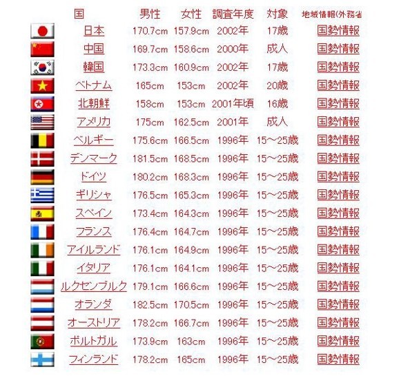 本当にどうしようもない民族だと思う。なんか日本で平均身長を検索すると大体において引用元がwikipediaなんですよね。