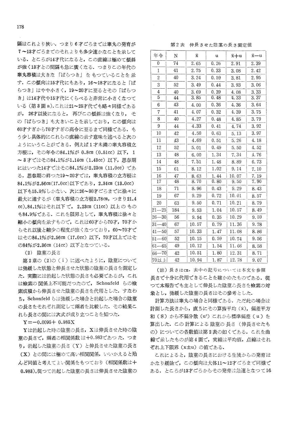 表2が、全べての年齢から採取した、長さが載っています。