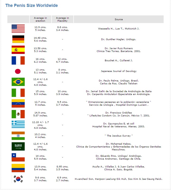 勃起時と平常時の差 アメリカ4.1cm フランス4cm 日本5cm イタリア5cm コロンビア4.95cm