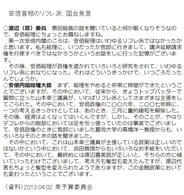 安倍さん自身は実はかなりリフレ寄りの思想を持っているらしい。