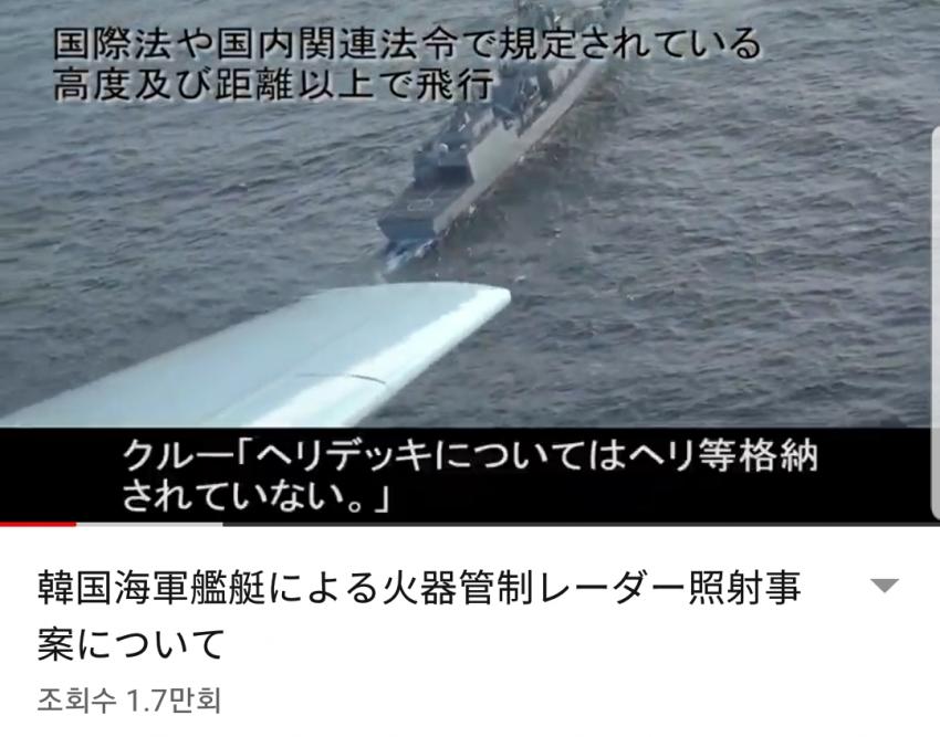 海軍当局者はしかし、「日本哨戒機が1000フィート(約305メートル)上空まで下降して広開土大王が脅威を感じうる状況だった」とし「日本側が根拠としている国際法と国内法が何か分からない」と述べた。他の軍消息筋は「低空飛行を主にする哨戒機の特性を考慮しても、他国の艦艇を『オントップ(真上)』飛行するケースは珍しい」とし「今回の哨戒機の飛行はEOTSの光学カメラに映像に残っている」と話した。