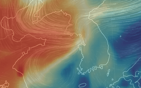 風が朝鮮半島でせき止められるため、韓国に集まって溜まってしまうのだ