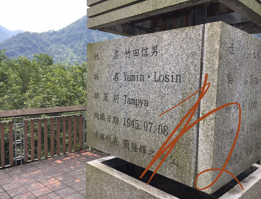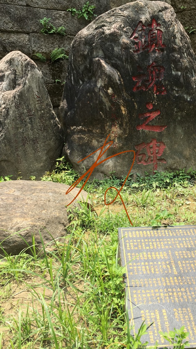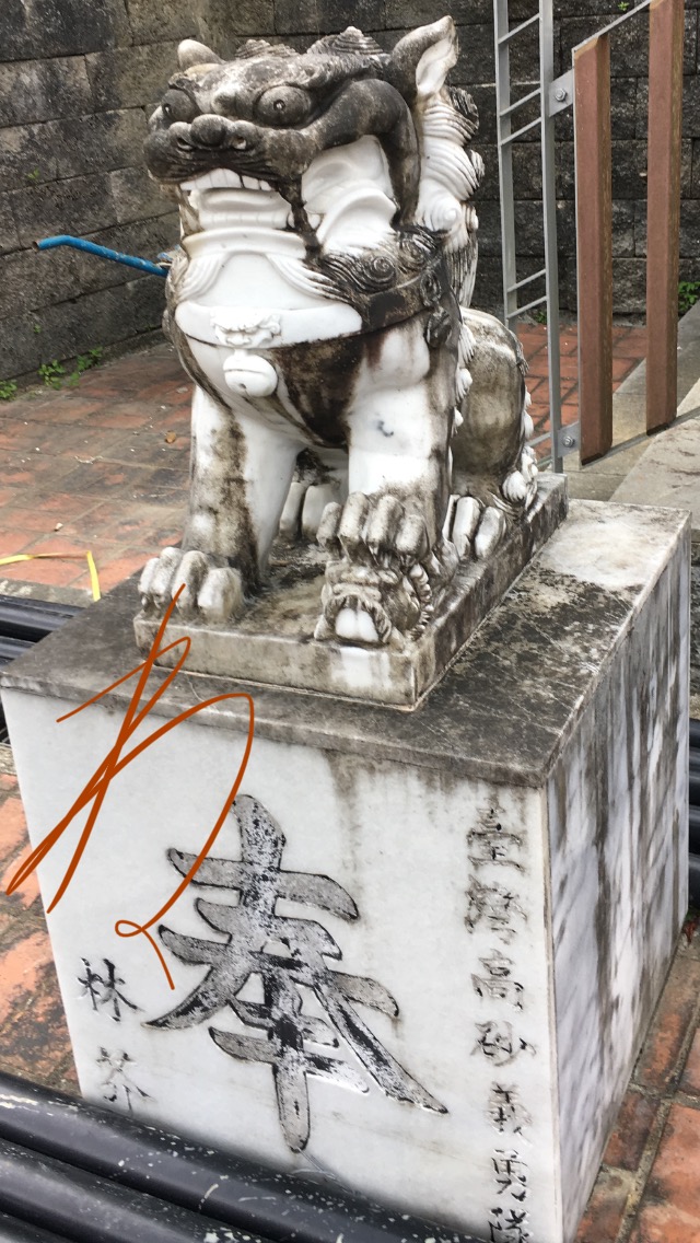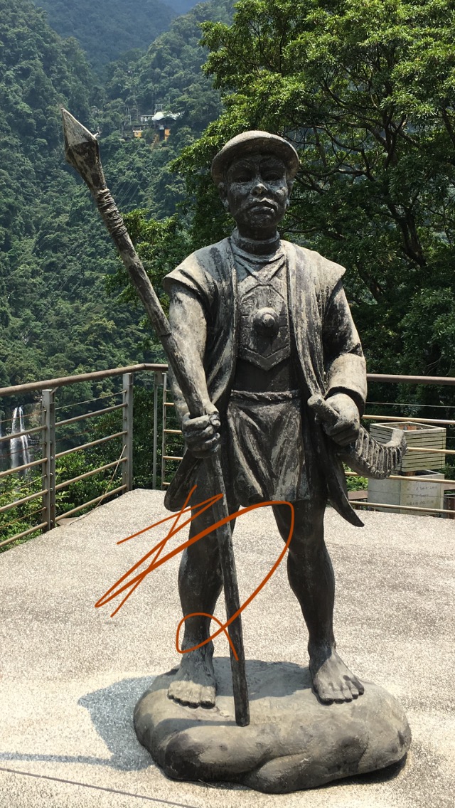 像の持つ槍、もともとのデザインは真っ直ぐ。土砂崩れの際に曲がったと予想。