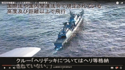 この映像を見ると、日本の哨戒機は広開土大王艦を近接飛行している。