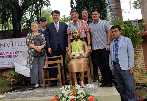 フィリピンでは今年4月、首都マニラにあった日本軍慰安婦被害者追悼銅像が日本側の強力な要請があった後、撤去されたことがあり、平和の少女像が日本の妨害を耐え抜くか注目される。マニラ追悼銅像は昨年12月、フィリピン国家歴史委員会と慰安婦被害者団体が建設したが、マニラ市が排水施設改善作業を名目に深夜に撤去して女性団体の反発をかった。