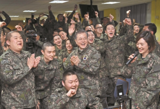 文在寅(ムン・ジェイン)大統領が28日、京畿道漣川(ヨンチョン)第5歩兵師団新兵教育隊を