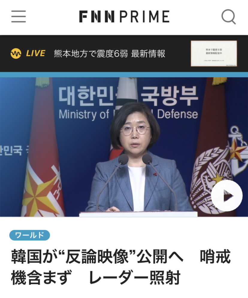 韓国国防省は、3日の会見の中で、日本側が当時の映像を公開したことについて、「事実をごまかす内容だ」と批判した。