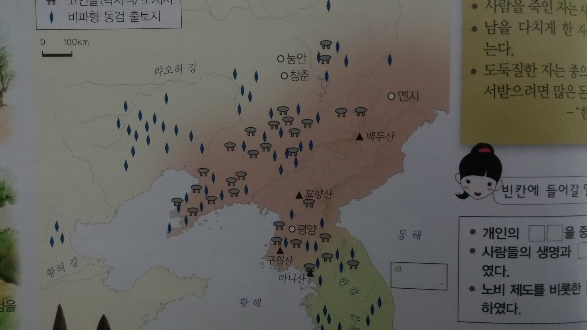 고등학교 역사 교과서 부록에 있는 고조선의 범위.