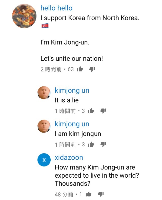 どの動画のコメントも韓国人と日本人しか居ないしw中国が突出して多いのは中国人がBAD押してるみたいだね