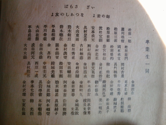 授業中は日本語、学校出ると朝鮮語。 当時の状況が推測されます。