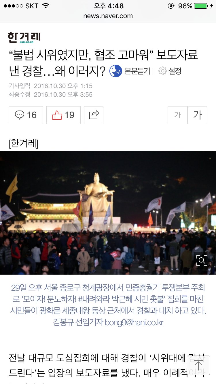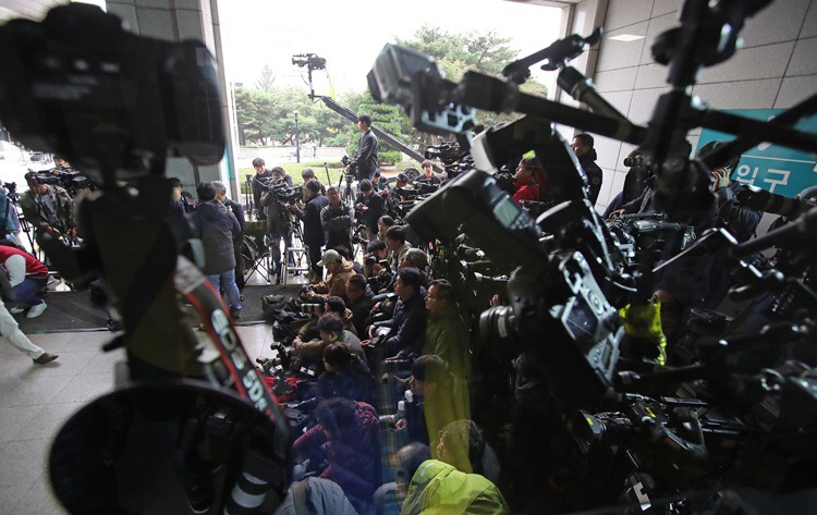 いずれ警官隊がデモ隊を通過させないかと、期待して見ている。기자들이 한국의 아이돌 최순실쨩을 기다리고 있는 w
