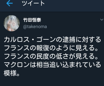 1名無し2019/01/11(Fri) 21:06:55ID:Y5MDA4Nzg(1/1)NG報告カルロス・ゴーンの逮捕に対するフランスの報復のように見える。フランスの民度の低さが見える。マクロンは相当追い込まれている模様。https://i.imgur.com/qOCu8QO.png>>222名無し2019/01/11(Fri) 22:14:07ID:MxNzY5NjI(1/1)NG報告>>1https://leia.5ch.net/test/read.cgi/poverty/1547204920/03名無し2019/01/11(Fri) 23:19:28ID:IzMjI0NzI(1/1)NG報告こんな人が身内にいて皇室もかわいそう>>4>>544名無し2019/01/11(Fri) 23:22:31ID:Y3NzI1MTQ(1/1)NG報告>>3お前も可哀想なやつ05名無し2019/01/11(Fri) 23:22:39ID:c4MTU0NDE(1/1)NG報告>>3次期天皇よりはずっとマシだと思うよ。そういうことを全て解った上で神輿を担ぐけどな。06名無し2019/01/12(Sat) 14:31:46ID:U1NDcyMDA(1/1)NG報告ゴンさんの件で、フランスの上流階級(成金含む)は、ちょっと特権意識があるような気がしたな。ネットの反応では、「フランスなら金持ちは見逃されるのに」とか、二極化が進んでるような印象を受けた。「フランスの民度」と一概には言えないように思う。07名無し2019/01/12(Sat) 14:46:21ID:EyNzYzNTI(1/1)NG報告別にフランの民度とか必要なくないか?なんで態々書くかね。08名無し2019/01/12(Sat) 14:55:04ID:UyNDA4NjQ(1/1)NG報告フランスパンVSジャパンパンの旨さはどっちだ!!09名無し2019/01/12(Sat) 15:01:38ID:c0NjMyMDA(1/1)NG報告もう竹田氏も黄色いベスト着るしかない0