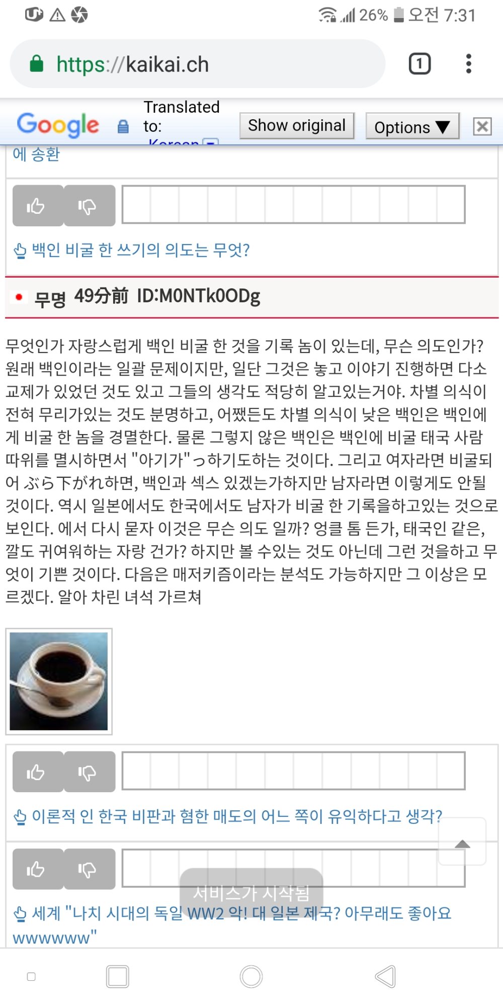 일본이 백인에 비굴해지는 것에 대해 화내는것인가?