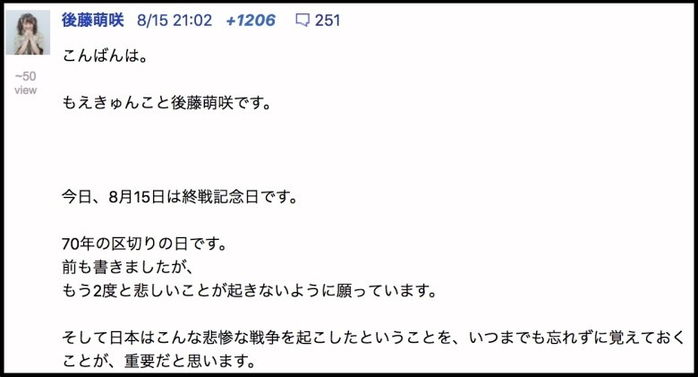cf:《 AKB48後藤萌咲、韓国ネット民から暴言を浴びて生配信中に号泣。セクハラ発言も… 》