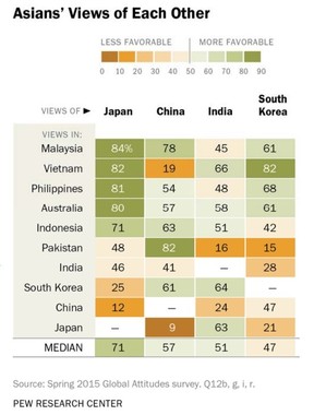 好感度調査でも中国は韓国が好き、韓国は中国が好き。日本嫌いで一致。