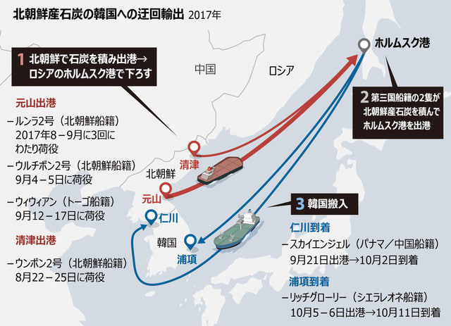 るなど、制裁決議違反の疑いがある事例が相次いでいるということです。