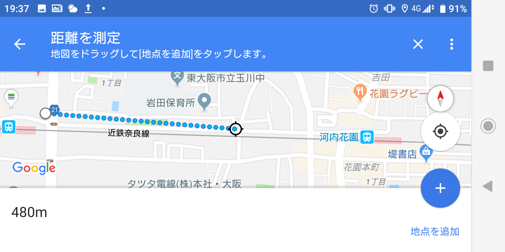 の0:15あたり。撮影場所から500m程と思われます。