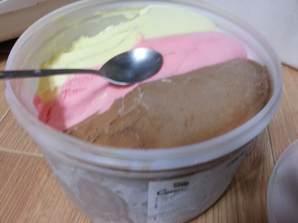 オレンジとイチゴミックスって日本では見ないので興味ある暑いからアイスクリームほしい。でも金が無い。