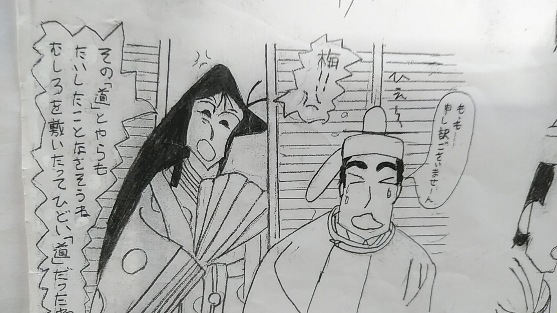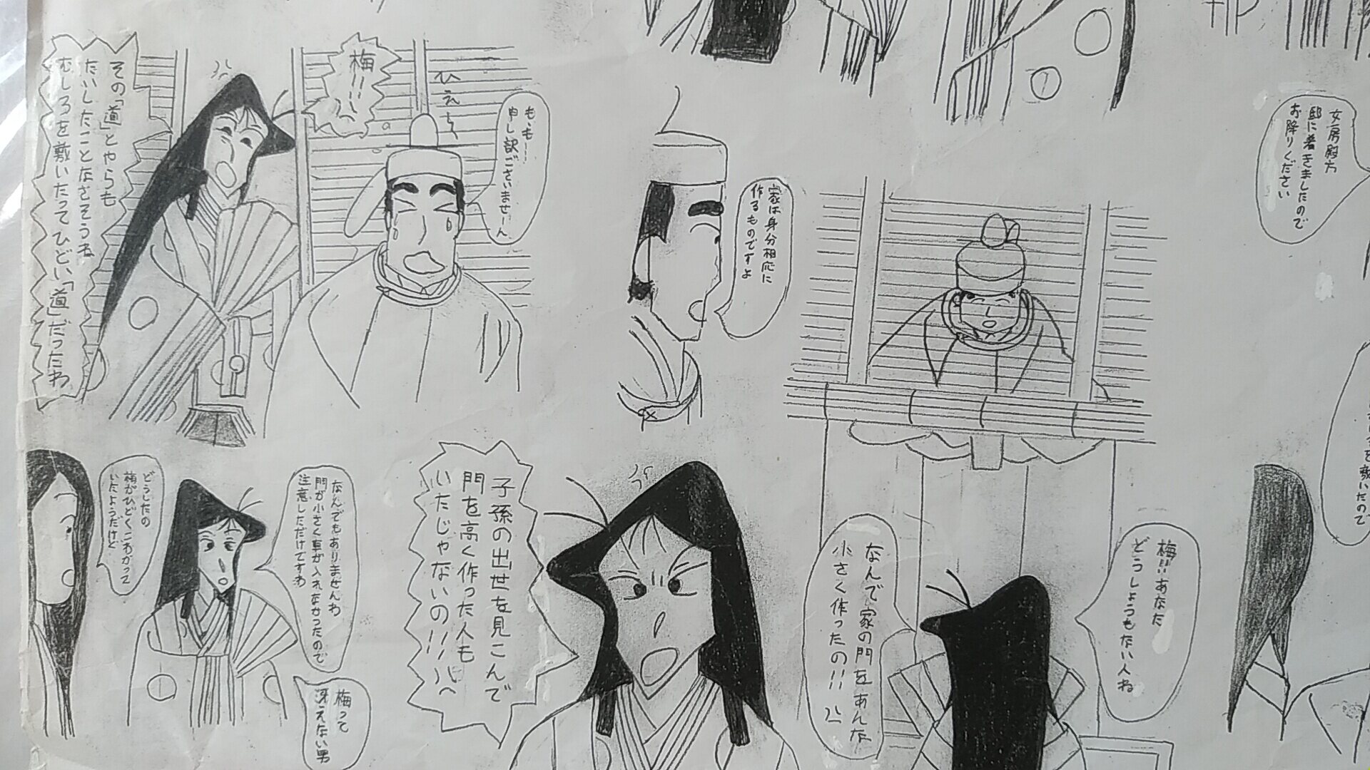 >>42清少納言の枕草子の平生昌の漫画です。清少納言たちが中宮定子の出産のため平生昌邸に入ることになるが、門が小さく、牛車が通れないので、清少納言が平生昌に抗議している場面です。平生昌が言い訳するので、清少納言がやりこめている。清少納言の気の強さ、きつさ、まつざか先生にそっくりですね。