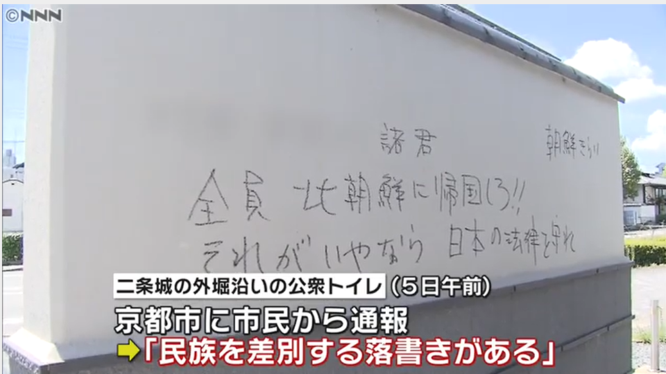 逮捕容疑は5月4日、男性用個室トイレの壁や便器に「武漢人を皆殺しにしよう」などと落書きした疑い。- 80