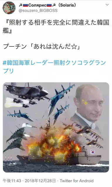 次はモスラの幼虫を韓国の軍艦に乗せとくれ