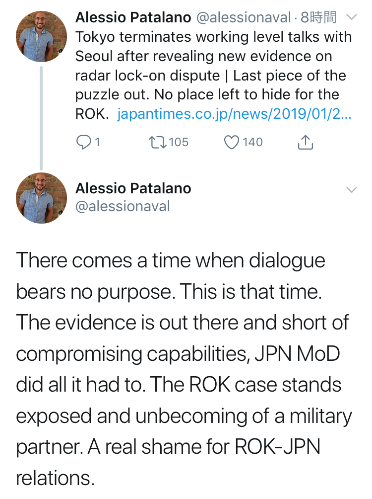 ただ起きた以降の海外全体的にコメント見ると韓国軍はレーダー照射はしたって認識がほとんどっぽい