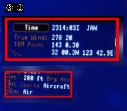③赤外線画像は右下に探知目標の距離・高度が表示される。加工されている可能性あり。