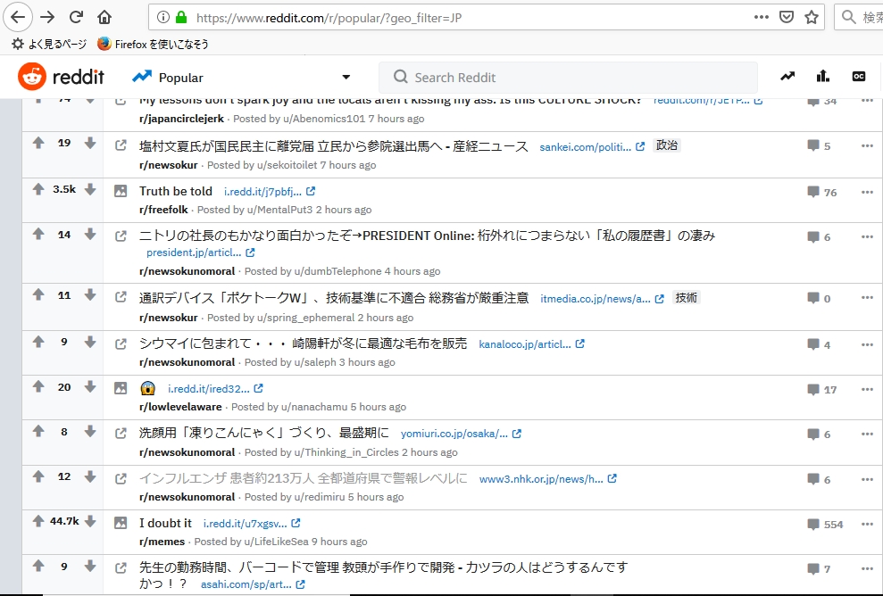 redditにおける日韓スレッド