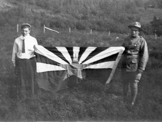 > また、旭日旗とアリゾナ州旗が似ているという主張については「それも十分に議論すべき問題」とし