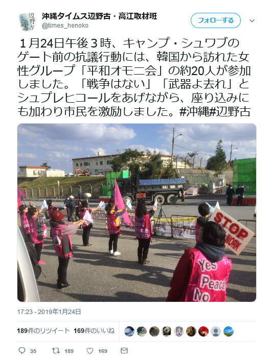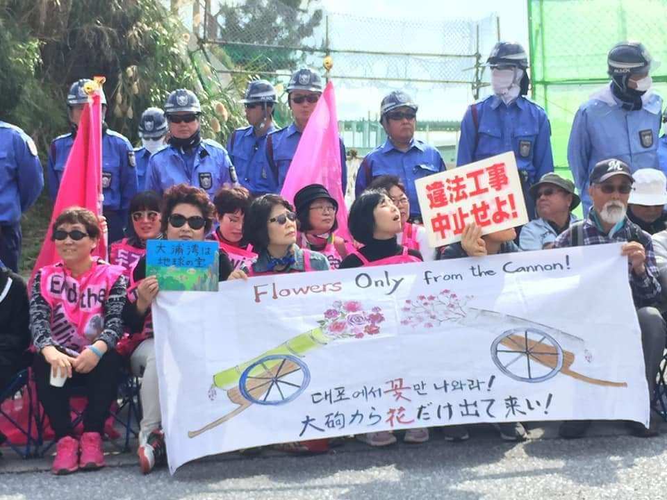 沖縄 辺野古で平和オモニ会の韓国人達がデモ活動
